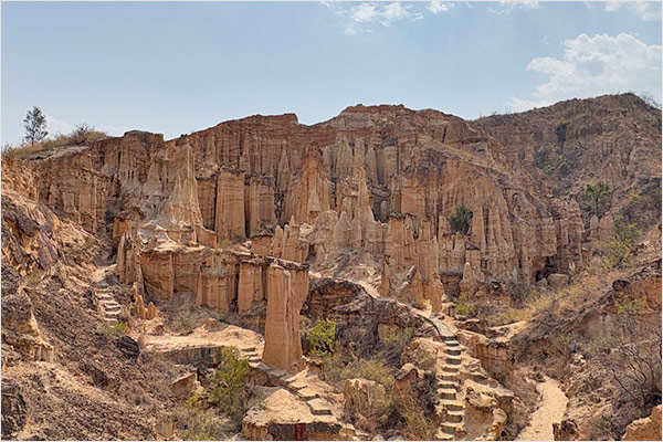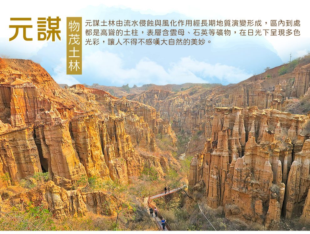 【元謀土林(物茂土林+電瓶車)】虎跳灘土林又稱物茂土林,通常所說的元謀土林景點即指此處。這裡的土柱錯落縱橫,形態多以城堡狀、屏風狀、簾狀、柱狀為主。顏色有紅色、黃色、白色、褐色等。