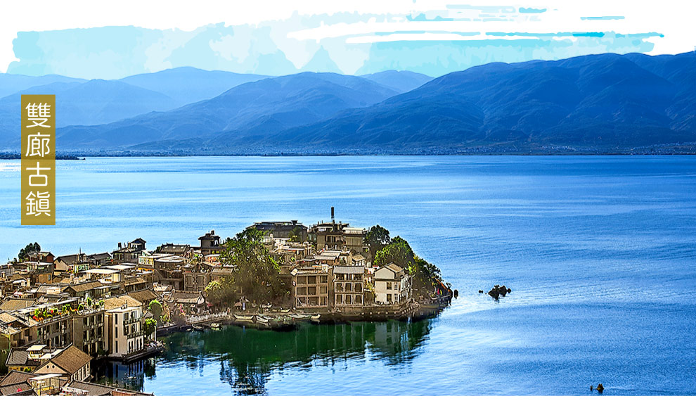 【雙廊古鎮】素有「大理風光在蒼洱,蒼洱風光在雙廊」的美譽,居民建築保持了典型的白族建築群落,尤以精湛的雕塑和彩繪藝術而著稱於蒼洱一帶。
