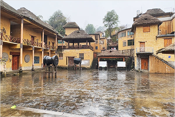 【彝人古镇】在建築風格上延續了原德江城的風貌,再現了南宋時期的盛世繁華。古鎮建築樣式彙集了雲、貴、川等地的彝族民居樣式,同時深入挖掘楚雄彝族文化,參照傳統彝族村落建築設計,畢摩房、蘇尼房、姑娘房等在此留存。