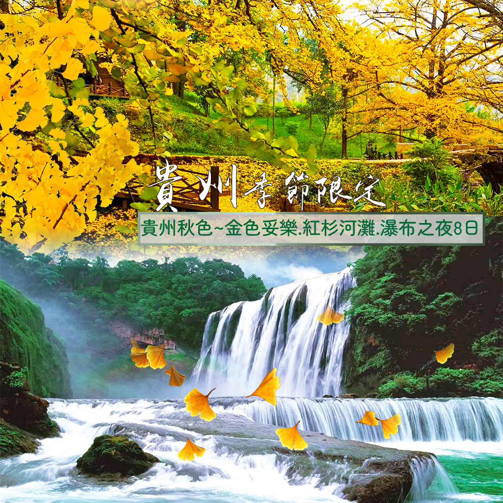 季節限定 貴州秋色~金色妥樂.紅杉河灘.瀑布之夜8日(自由行) |