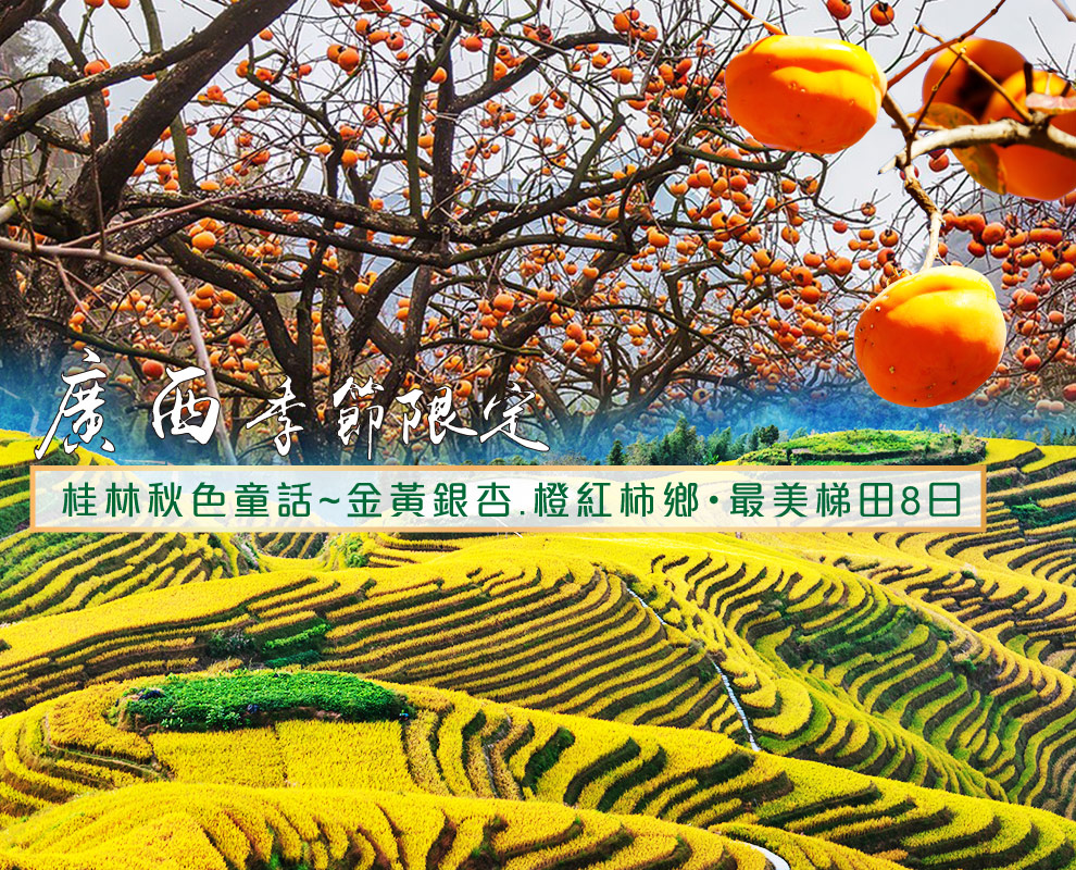 季節限定 桂林秋色童話~金黃銀杏.橙紅柿鄉.最美梯田8日(自由行) |