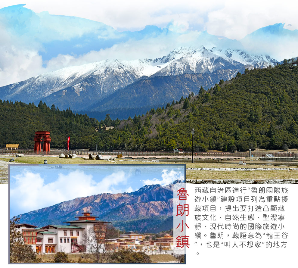 【魯朗小鎮】位於西藏林芝八一鎮以東80公里左右的川藏路上,打造凸顯藏族文化、自然生態、聖潔寧靜、現代時尚的國際旅遊小鎮。