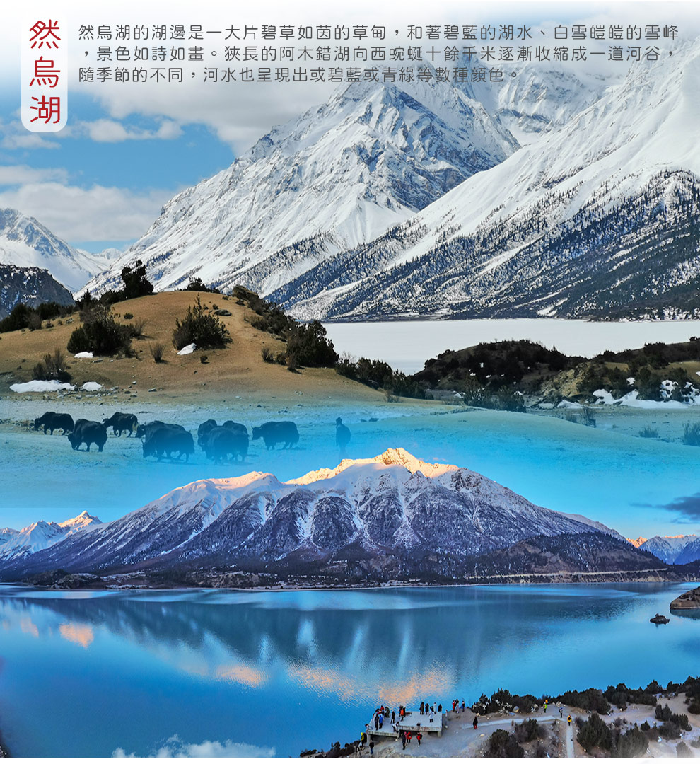 【然烏湖觀景台】帕隆藏布江的源頭—被譽為“睡美人”的絕色美景—然烏湖。周圍是茂密的森林,晶瑩的冰川,如茵的草甸、莽莽森林,白雪皚皚的雪山倒影在其中,千嬌百媚,景色如詩如畫。