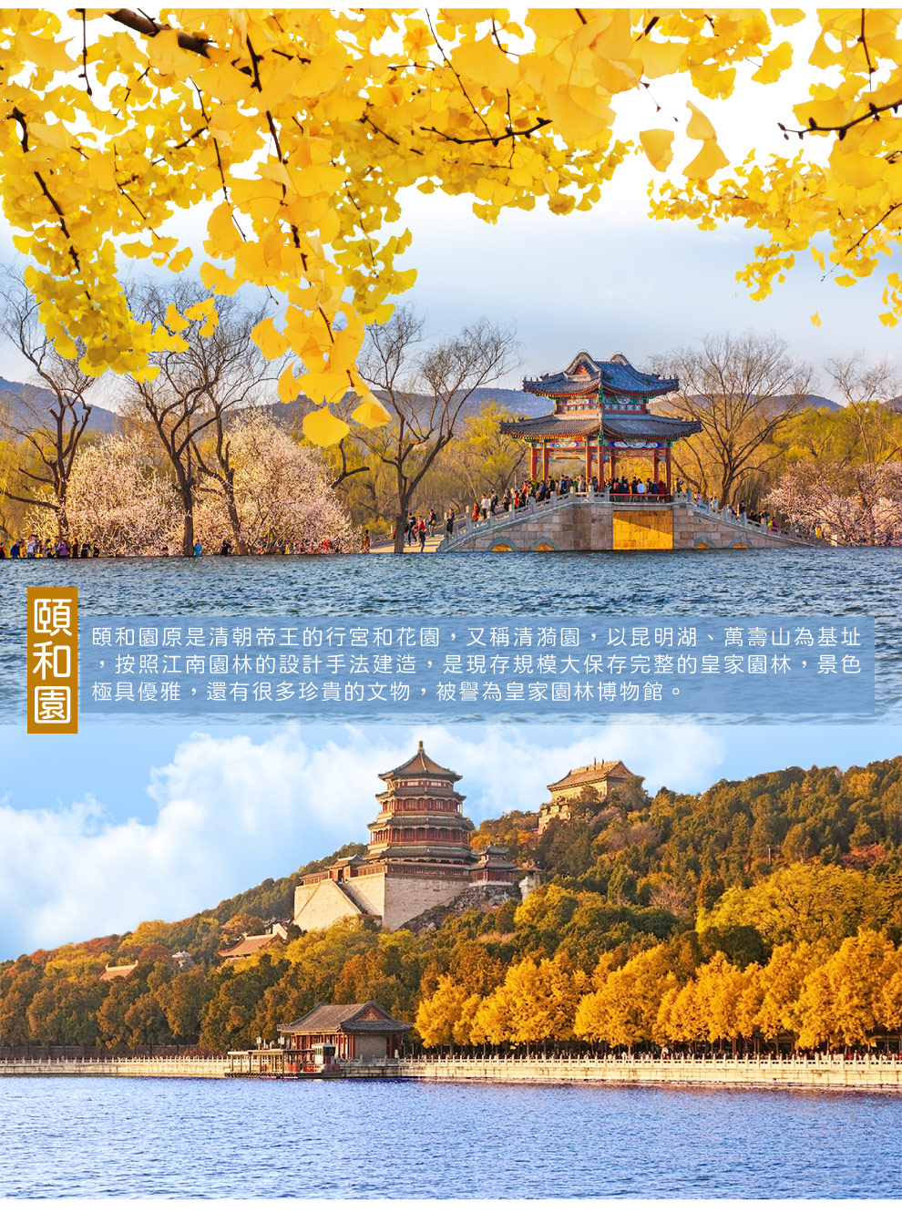 【頤和園-秋景】頤和園是清朝的皇家行宮和大型皇家園林,頤和園素以人工建築與自然山水巧妙結合的造園手法著稱於世,是中國園林藝術頂峰時期的代表。1998年,頤和園被評為世界文化遺產。