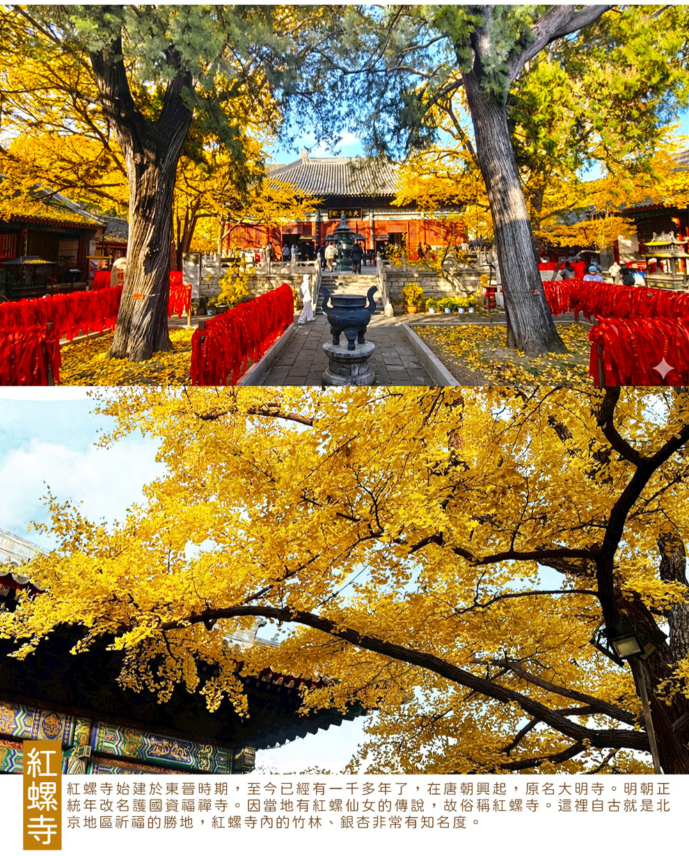 古北水鎮→懷柔紅螺寺賞秋(銀杏&紅葉彩林)→雁棲湖賞秋