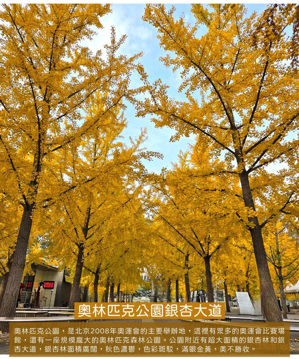 北京→奧林匹克公園銀杏大道→地壇公園→漫步古北水鎮漫遊-賞秋(含單程電瓶車)