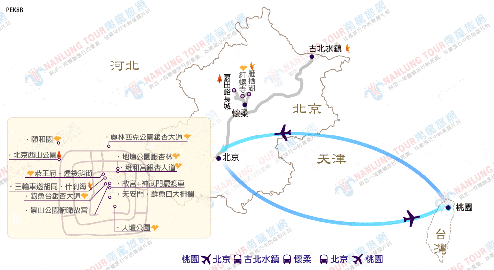 桃園→北京→頤和園-秋景(此為參考航班,航空公司/航班/時間可能會有所變動。正確搭乘航班時間以出發前最終確認為主)