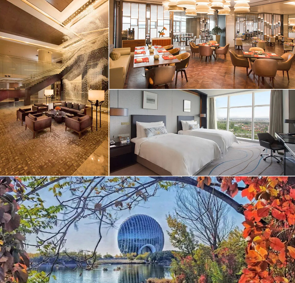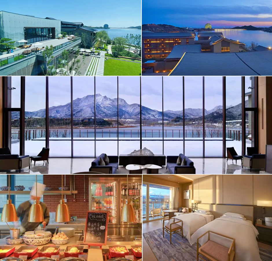 北京日出東方凱賓斯基飯店坐落於風景如畫的雁棲湖畔,比鄰壯麗的燕山山脈和雄偉的慕田峪長城。飯店建築外形宛如一輪冉冉升起的太陽,與周邊山水融為一體,是頗受歡迎的網紅打卡地。