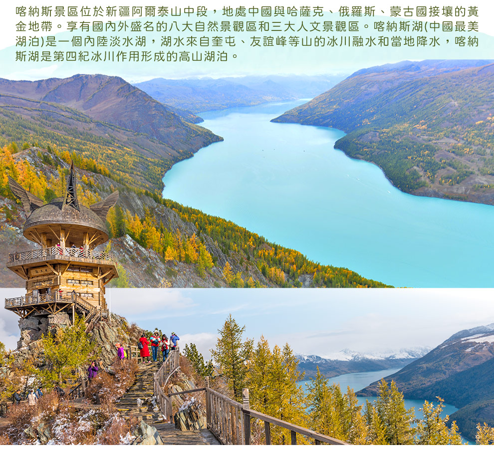 禾木村→喀納斯景區~喀納斯湖→泰加林廊道散步→神仙灣,月亮灣,臥龍灣--木棧道輕鬆漫步.享受舒適悠閒氛圍